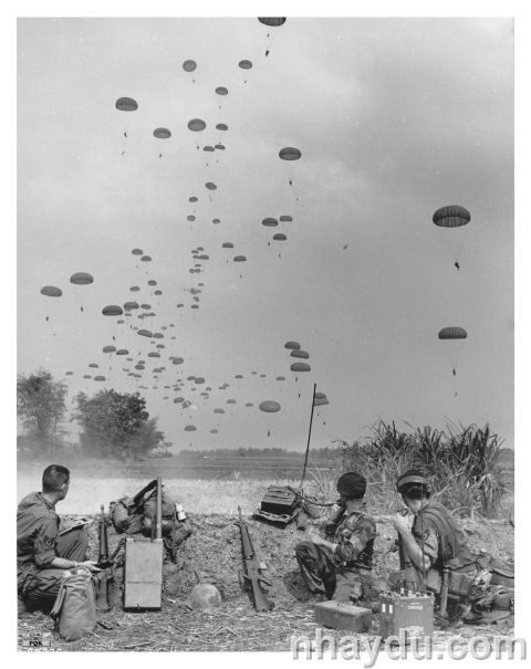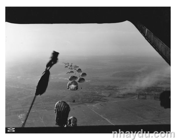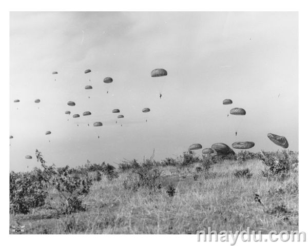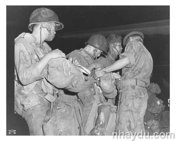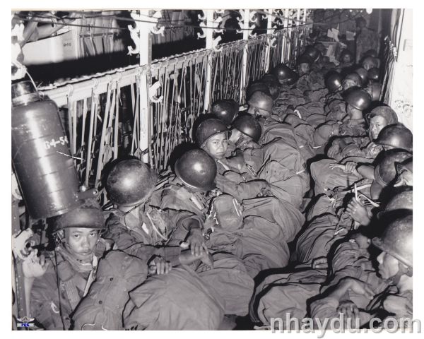Màn mở đầu là màn thi chạy Rồi nhẩy đài, hít đất kkéo xà ngang ..Rồi .. kéo dây, nhẩy xổm thập bát ban.Phần sức khoẻ .. dĩ nhiên là qua thoát !!! Màn kế tiết ba tuần liền dưới đấtTập chuồng cu, kéo gió, chống dù lôiĐài mười thước, rồi nhẩy, nhẩy chuồng cu ! Thì .. cũng kệ .. nghe GO .. nhắm mắt phóng ... Tuần lễ cuối ... mới là tuần gây cấnNhẩy sô đầu C47 hom hem.Chị Vui chơi khó đem mấy em thật đẹp.Đèn xanh bật, mấy em GO mất hút ..!Em GO được, chẳng lẽ mình không được ?? Dây SOA dài thót ruột .. chết cha ... Ầm ầm .. rồi im lặng dù mở to Mới sự nhớ mình 'quên' đâu có đếm Sô thứ hai nhẩy C119Quan tài bay, mà tụi Mỹ nó chêTừ sô thứ bốn ta GO ngon ra phếtMần sáu sô .. khoá dù nào đã hếtNghỉ một ngày .. dưỡng sức nhẩy sô đêmC123 gầm thét phóng vụt lênQua khung cửa đèn Sài gòn hoa lệMáy bay vào vùng .. mới bắt đầu thấy ngại(Bãi đáp, khói mầu, quen thuộc của tôi đâu. ?Bên ngoài cửa phi cơ đen nghịt một mầuHồi hộp thế .. nghe GO .. là tôi phóngĐếm đến 333 nhìn lên tôi khámT. mười nở tròn .. che khuất một vòm saoHít một hơi dài,.. ôi ! phẻ phổi biết bao ...Đáp gọn phát nữa tôi Thiên Thần Mũ ĐỏLiếc xuống bãi tôi kéo dù về hướng lửaTiếng em bán cháo lòng náo động .. đất dâng lênChưa thấy đất đâu đã lấy thế cho "cẵng binh"Bốt-đờ-sô chấm đất, tôi lăn tròn đúng kiểuPhép 24 tiếng, rồi chỉnh tề hàng ngũ Trình diện dưới cờ, Mũ Đỏ, áo hoa Da sạm nắng, mắt sáng ngời, vì những sô Ta ưỡn ngực đón huy hiệu dù lấp lánh (Mũ Đỏ 198??)